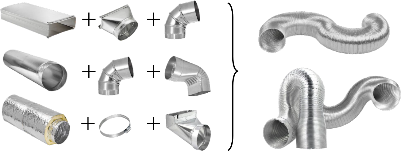 FAR LESS WASTAGE – The duct comes in 25ft pieces and only the required lengths are used (vs releasing a 25ft piece of insulated duct that cannot be compacted again).